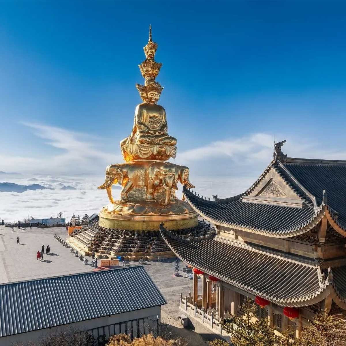 A program csúcspontja az Arany Csúcs, az Emei-hegység ikonikus, legmagasabb pontja. Felvonóval jutunk fel erre a szent helyre, ahol a felhők felett állva a tiszta hegyi levegő és a lenyűgöző kilátás mély belső élményt ad. Az Arany Csúcsot a buddhisták a megvilágosodás szimbólumának tartják, így az ide érkezők nemcsak a tájat, hanem a szellemi béke erejét is megtapasztalhatják.