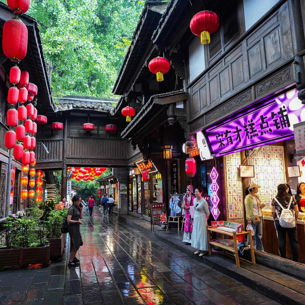 Ezt követően séta a Renmin Parkban, ahol bepillanthatunk a helyiek nyugodt, hétköznapi életébe: a parkban sokan gyakorolják a tai chit, beszélgetnek vagy egyszerűen csak élvezik a teaházak hangulatát. Egy csésze tea mellett mi is átadhatjuk magunkat a kínai életérzésnek.