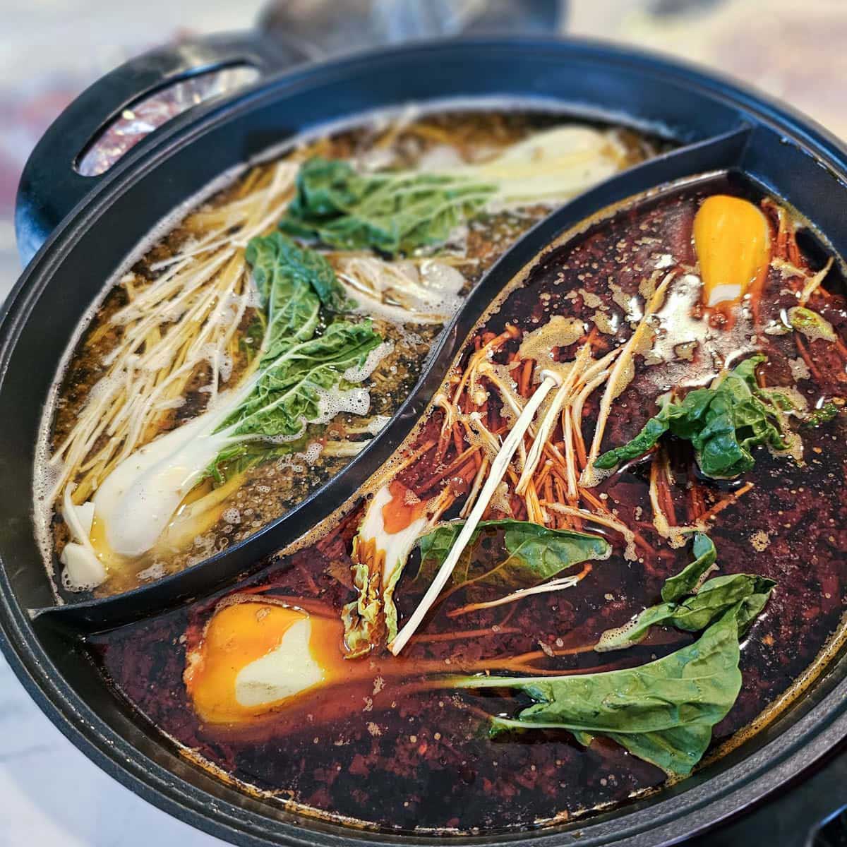 Közösségi étkezésre szánt fogás, ahol az asztal közepén rotyogó fűszeres alaplébe mindenki saját maga főzi bele a húst, a zöldséget és a tésztát.