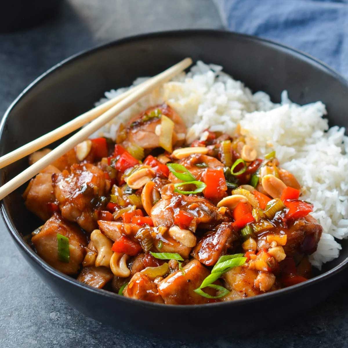 Szecsuáni eredetű fogás, amely mogyoróval, csípős paprikával és szójaszószos mártással készül.